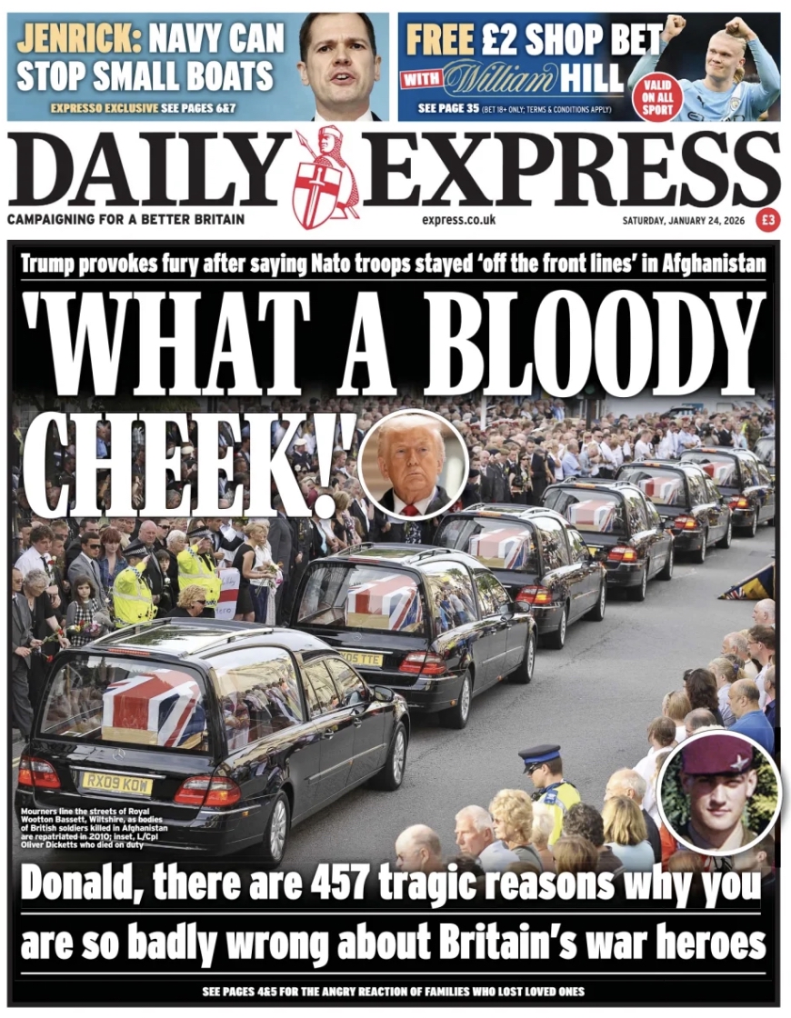 Update Saturday 24 January 2024: Trump backs down on his nauseating claim that British soldiers "stayed back a little".